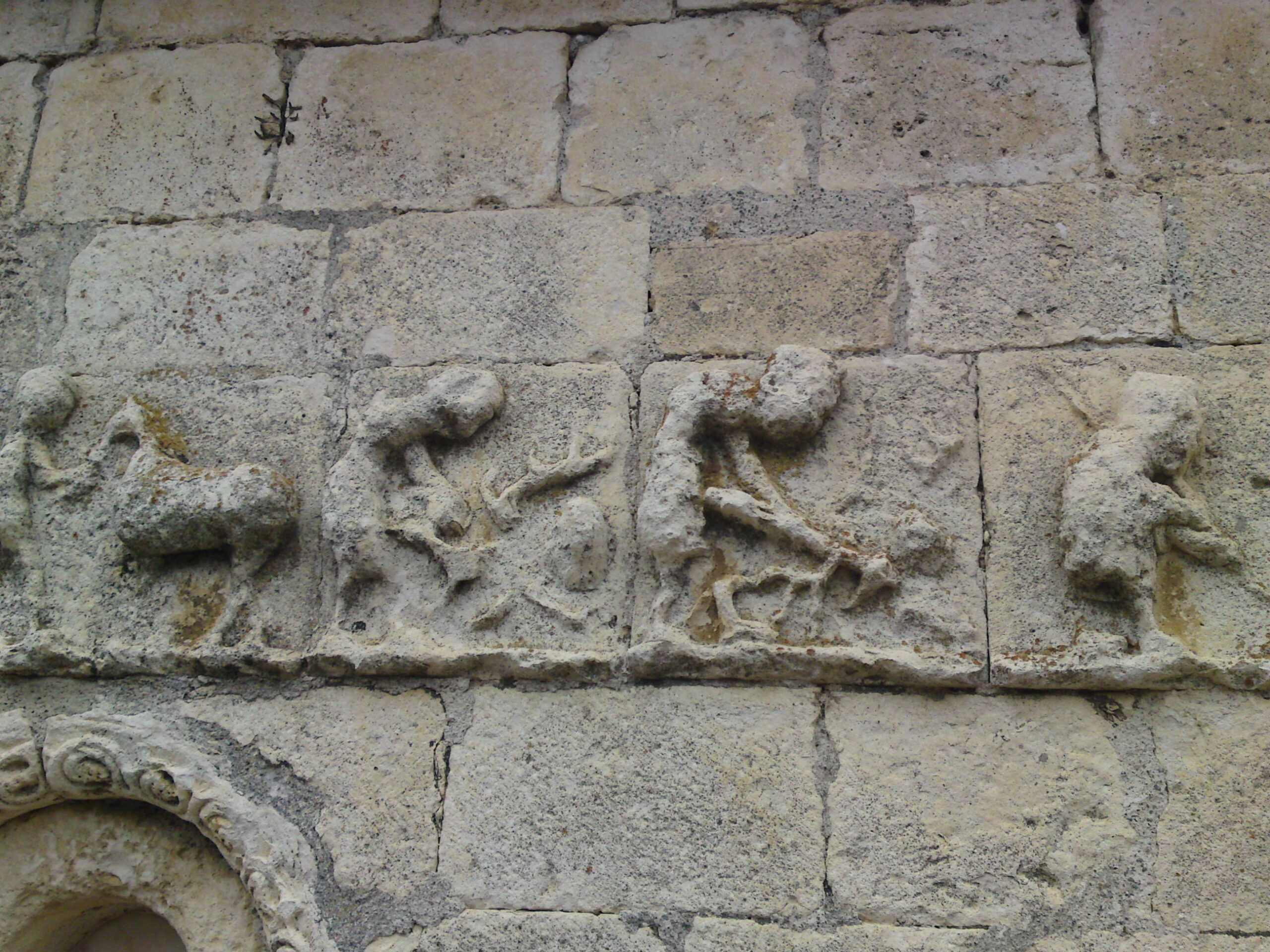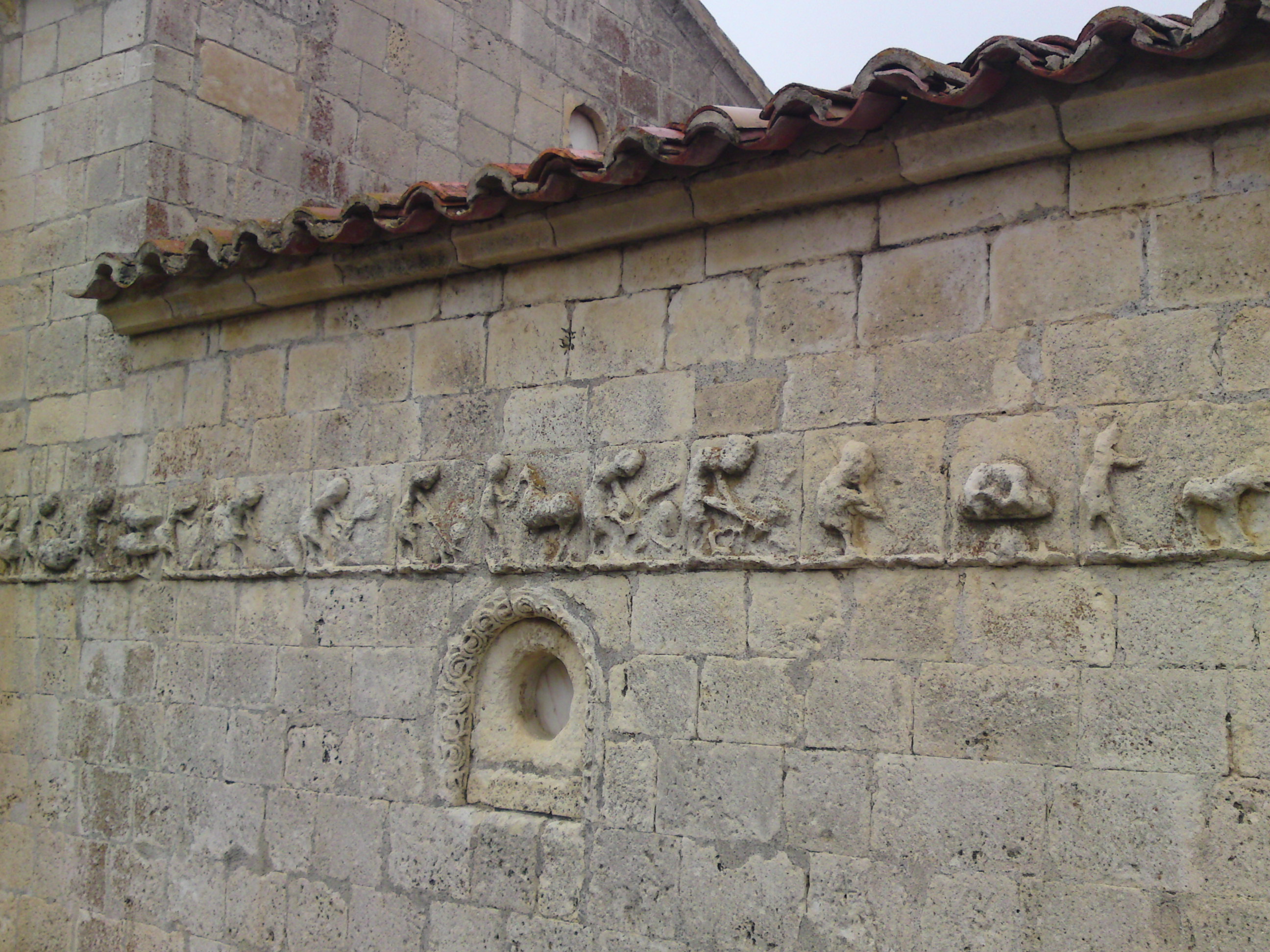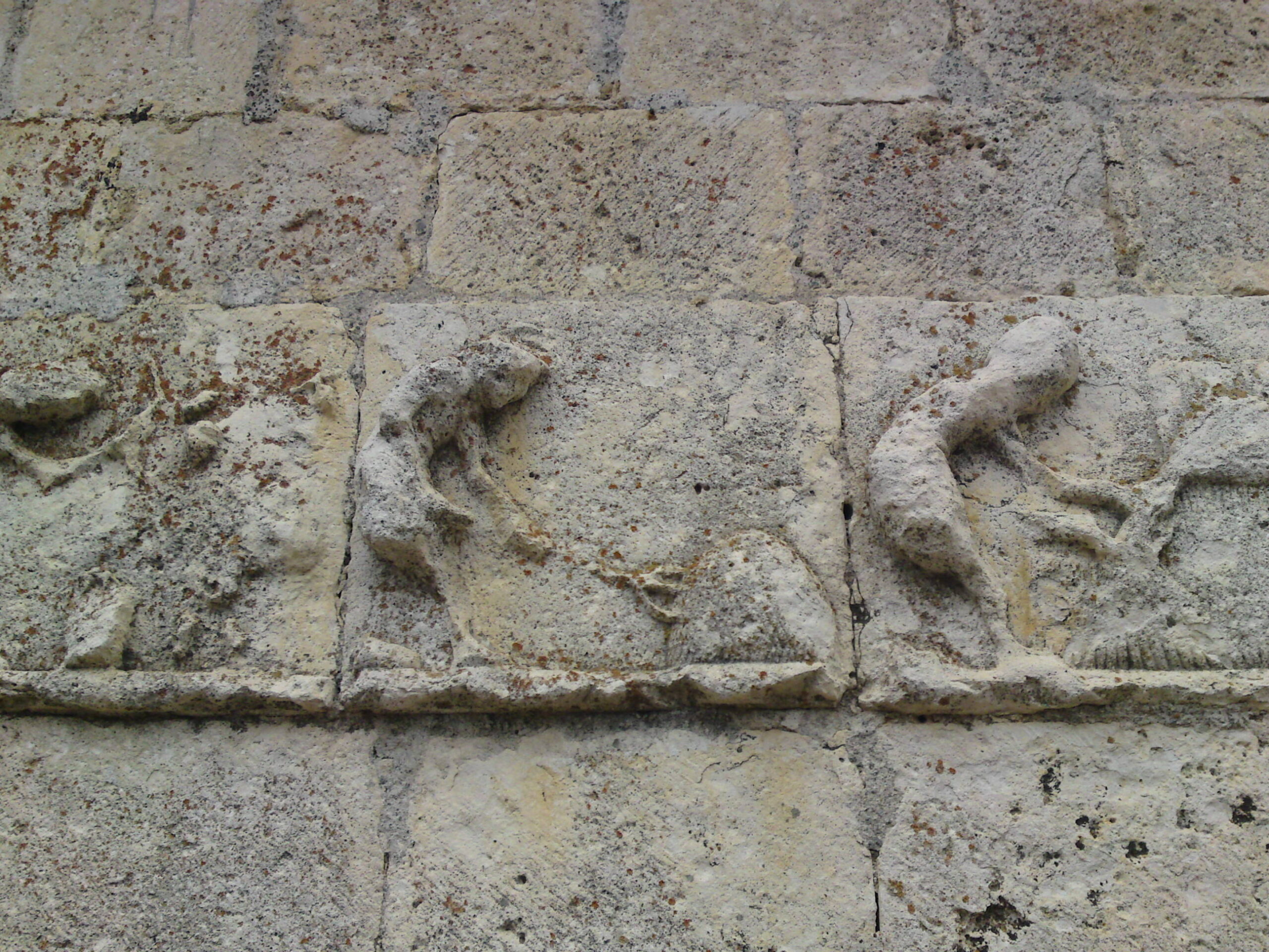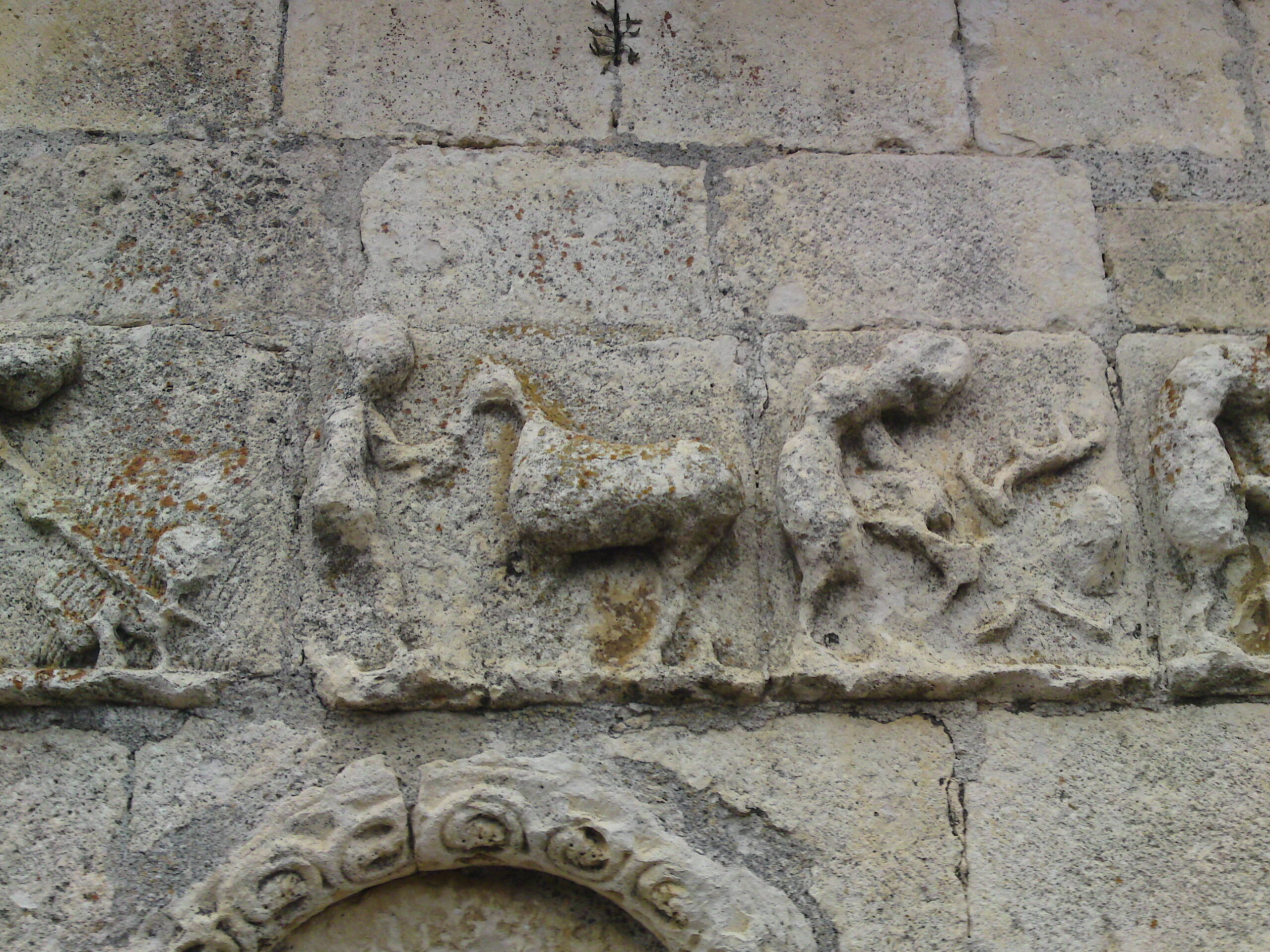 El orden de las imágenes esculpidas en el friso ha de interpretarse de derecha a izquierda. La primera escena es un combate entre dos caballeros que luchan con lanzas y que podría representar el enfrentamiento entre cristianos y musulmanes. Más a su izquierda aparece una realista escena de caza del jabalí, con perros mordiendo al animal y un hombre atravesándolo con su lanza. A partir de aquí comienza propiamente el Calendario: (Adjunto Imágenes en la Galería de Fotos al final del Post).