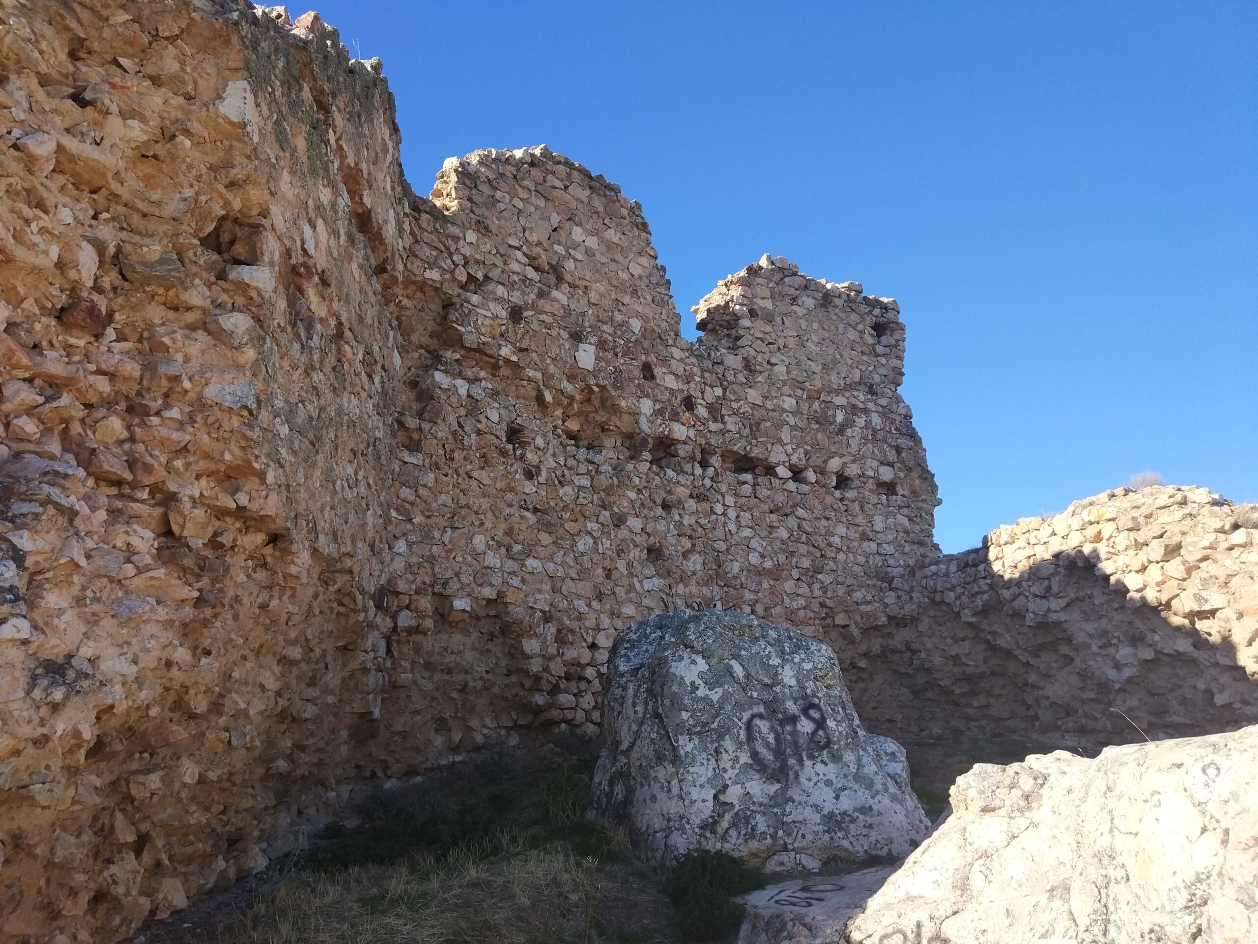 Cerca del Castillo había un pequeño poblado de 30 familias, el castillo servía de protección a los vecinos de Dos Hermanas, pequeña aldea de pastores y colmeneros, que creció a las faldas de la peña, extramuros de la fortaleza.  Pueden observarse unos cimientos, restos de aquella población, alrededor de la Peña del Castillo.
