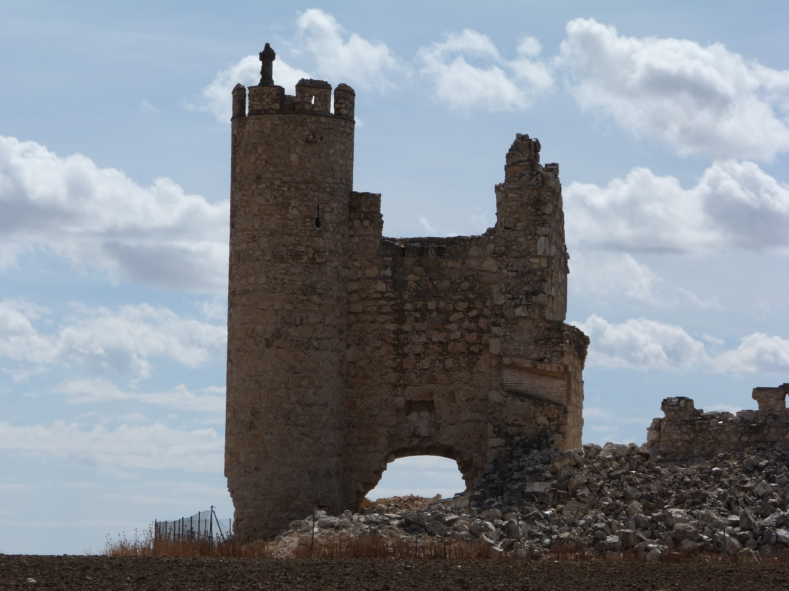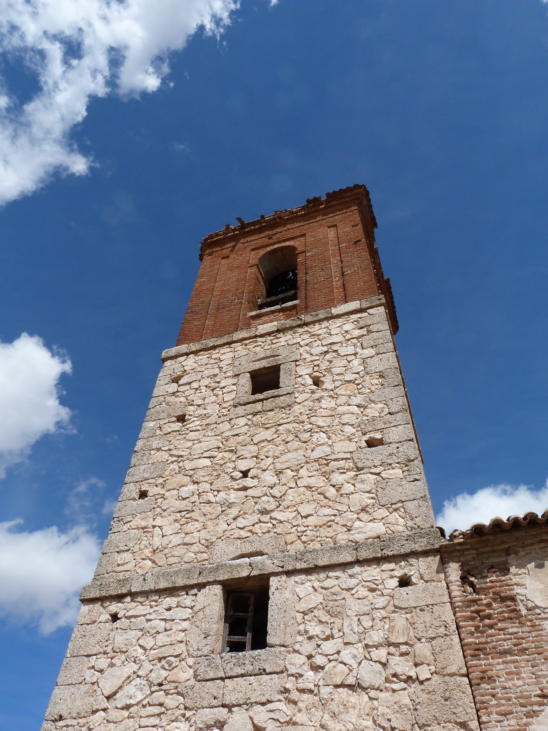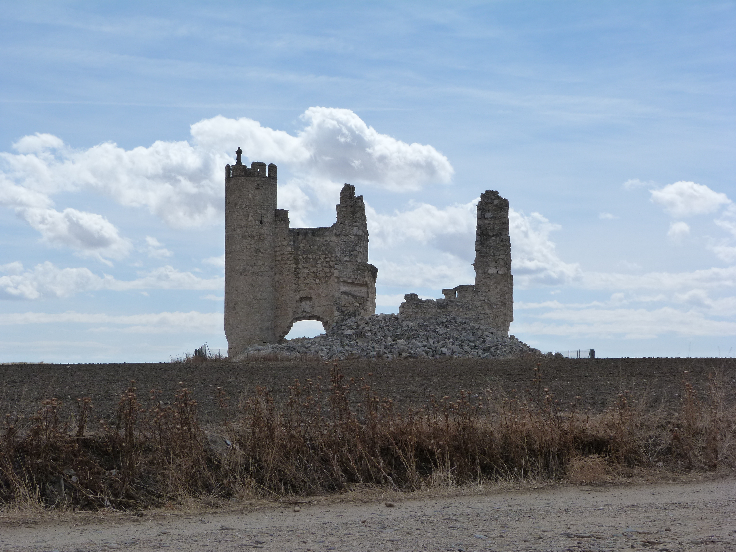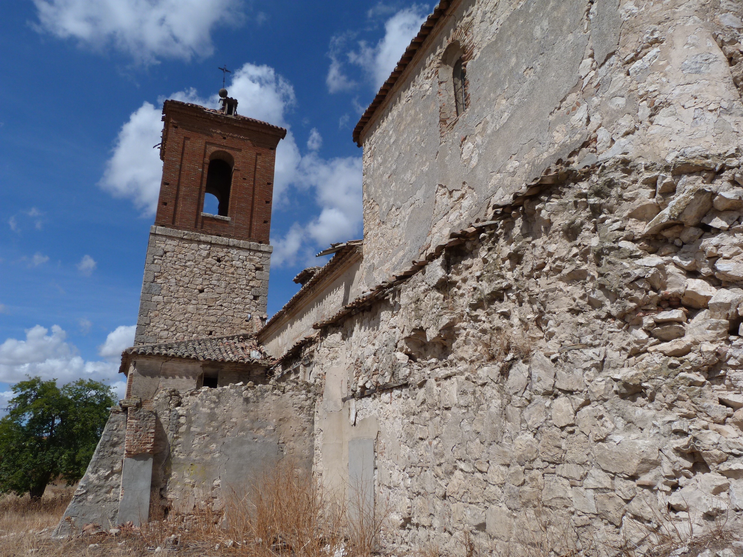 Al finalizar la calle única de Caudilla nos encontramos con los dos principales Monumentos del pueblo. Frente a nosotros las Ruinas del Castillo, el cual abordaremos con profundidad en una próxima entrada, y la Iglesia a nuestra izquierda, que ya desacralizada se encuentra en progresíva ruína; se encuentra tapiada, aunque se puede acceder al interior de la misma por la parte de la cabecera, donde un par de agujeros que alguien a perpetrado por lo que parece ser un nicho, sirve de acceso al interior ya vacío de la misma.