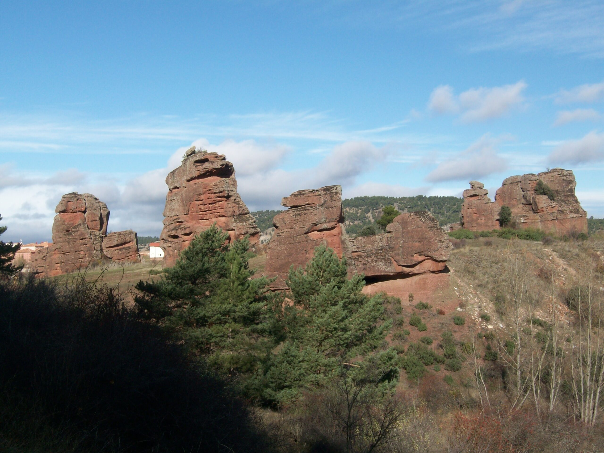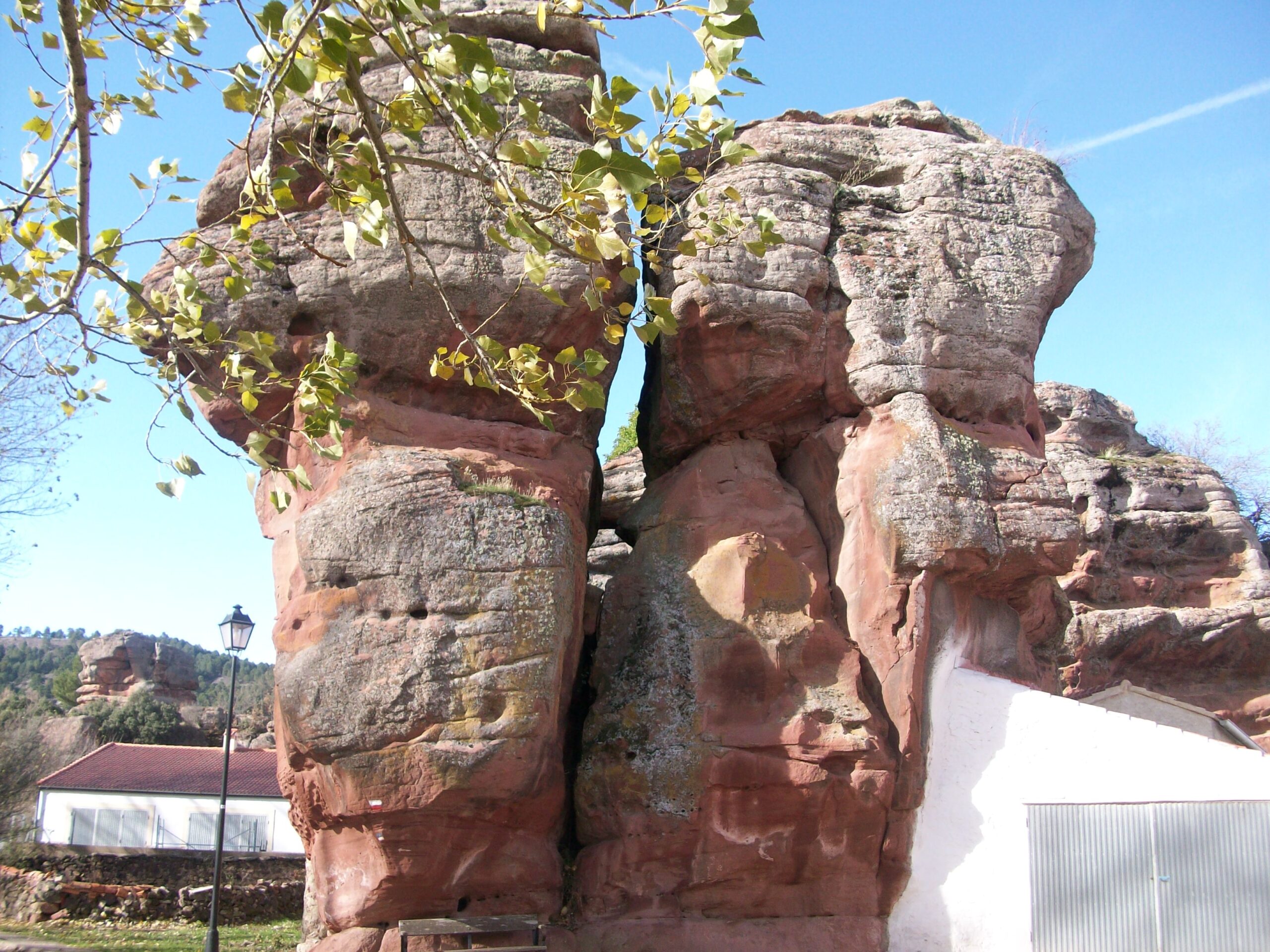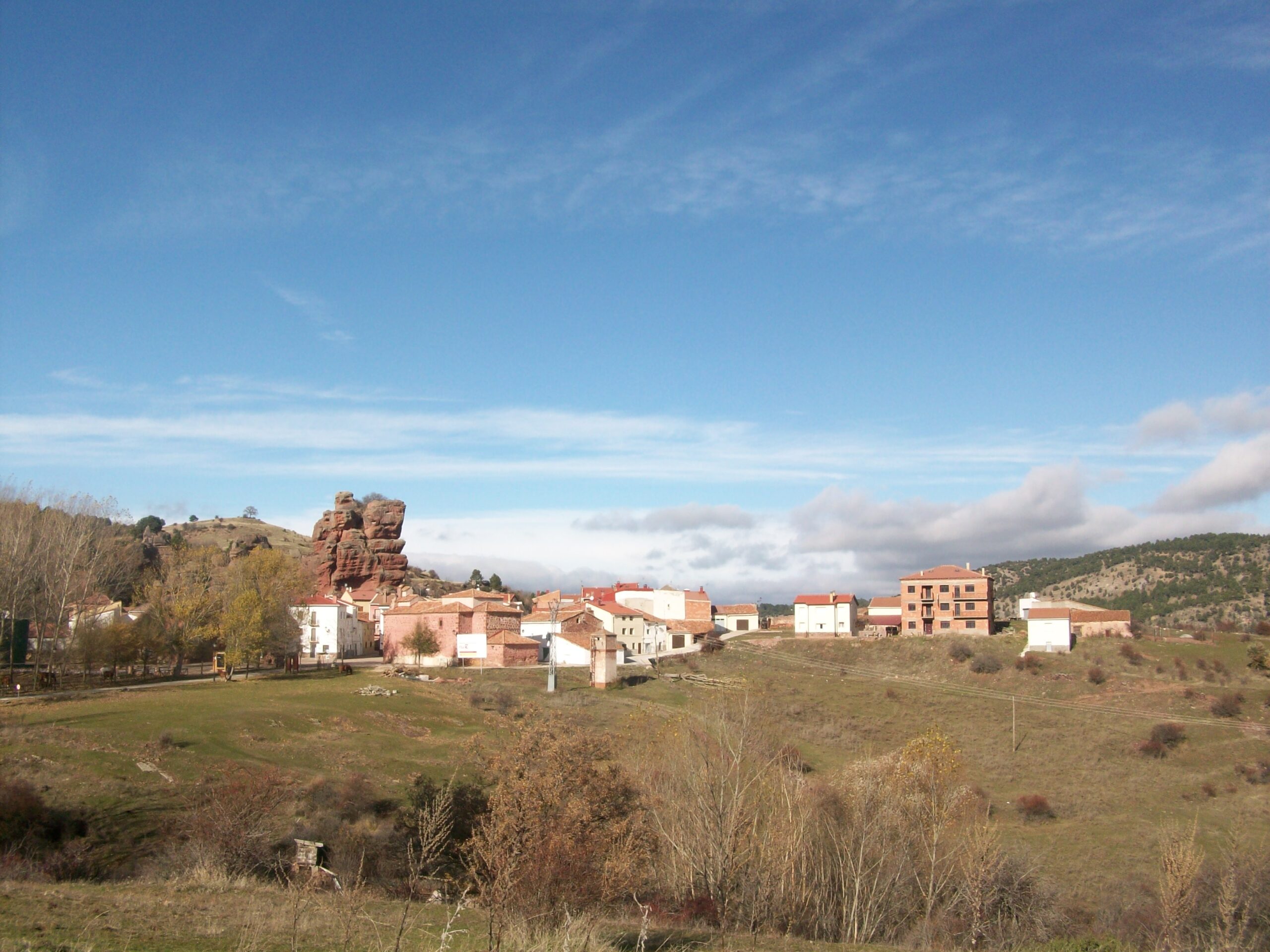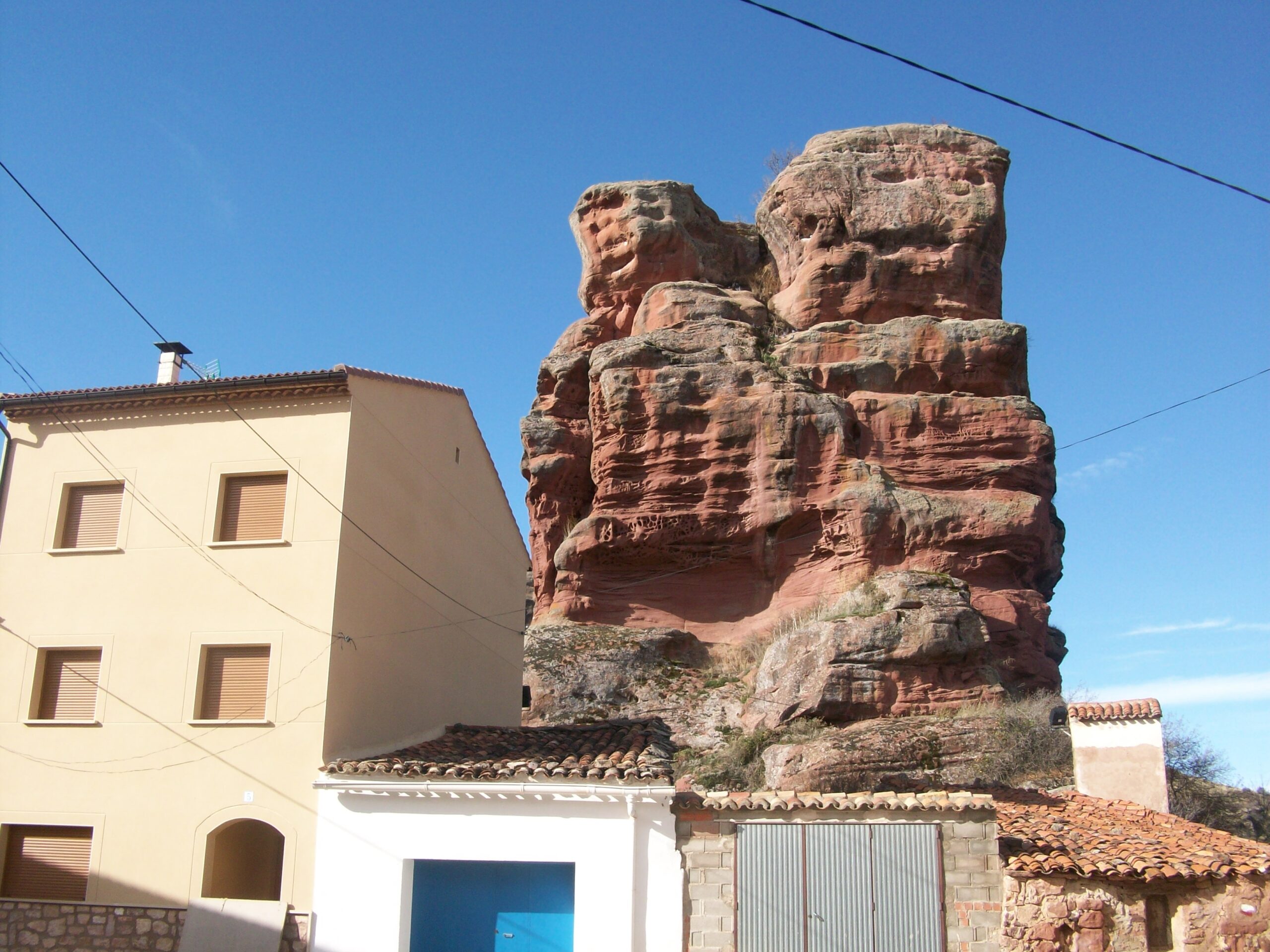 El Principal encanto del pueblo reside en sus casas y calles levantadas entre curiosas formaciones rocosas de arenisca roja, labradas durante la época del Triásico, cuando toda esta zona estaba bajo el agua. El porque los habitantes se asentaron en este lugar es muy fácil de entender, las formaciones rocosas actuaban como muralla natural ante las inclemencias de tiempo, y muchos pastores se guarecían del terrible frío de la zona entre las impresionantes rocas, con el tiempo se empezaron a construir casas y establos para proteger humanos y reses y ello dio origen al pueblo, por ello todas las Casas se sitúan al abrigo de estas moles de piedra, en otros casos se sitúan a la solana para combatir el duro invierno.