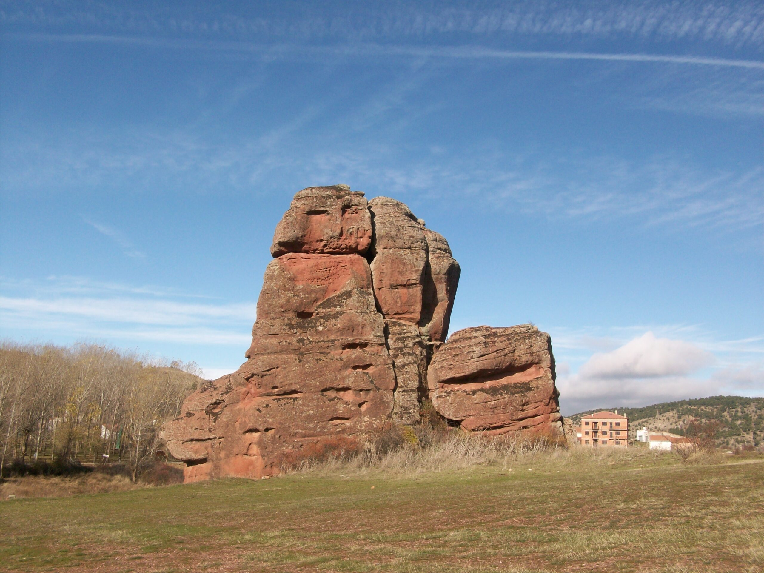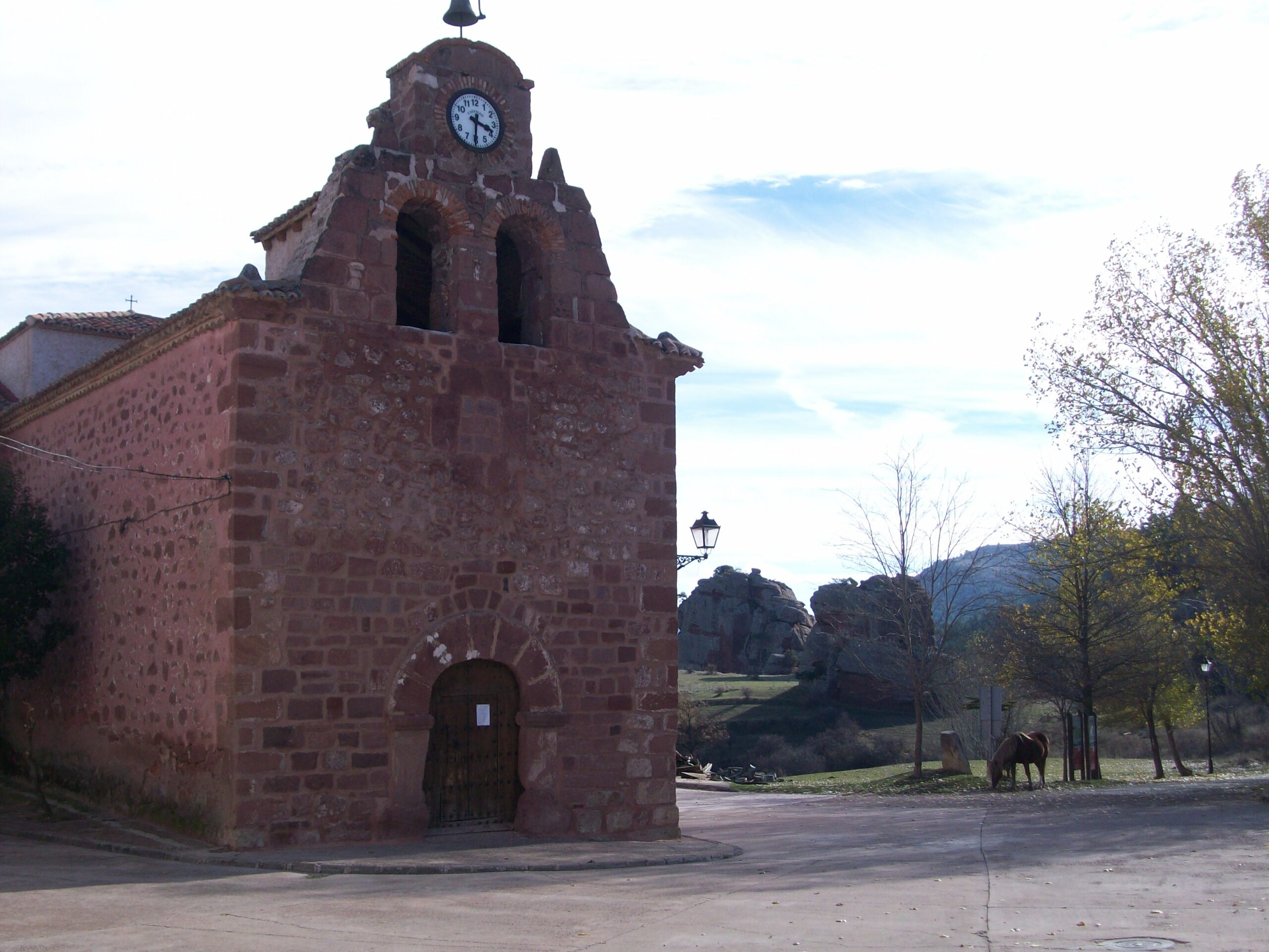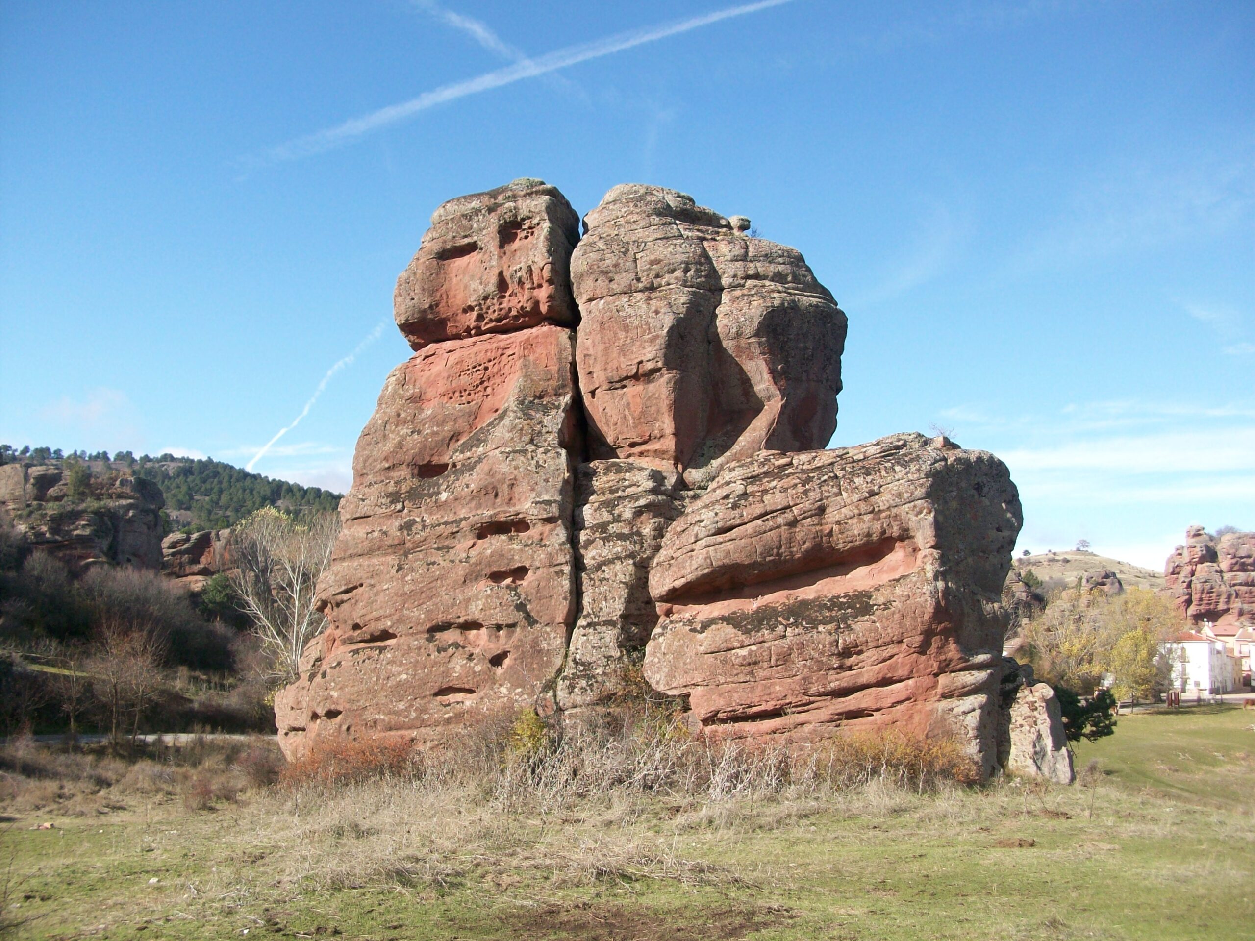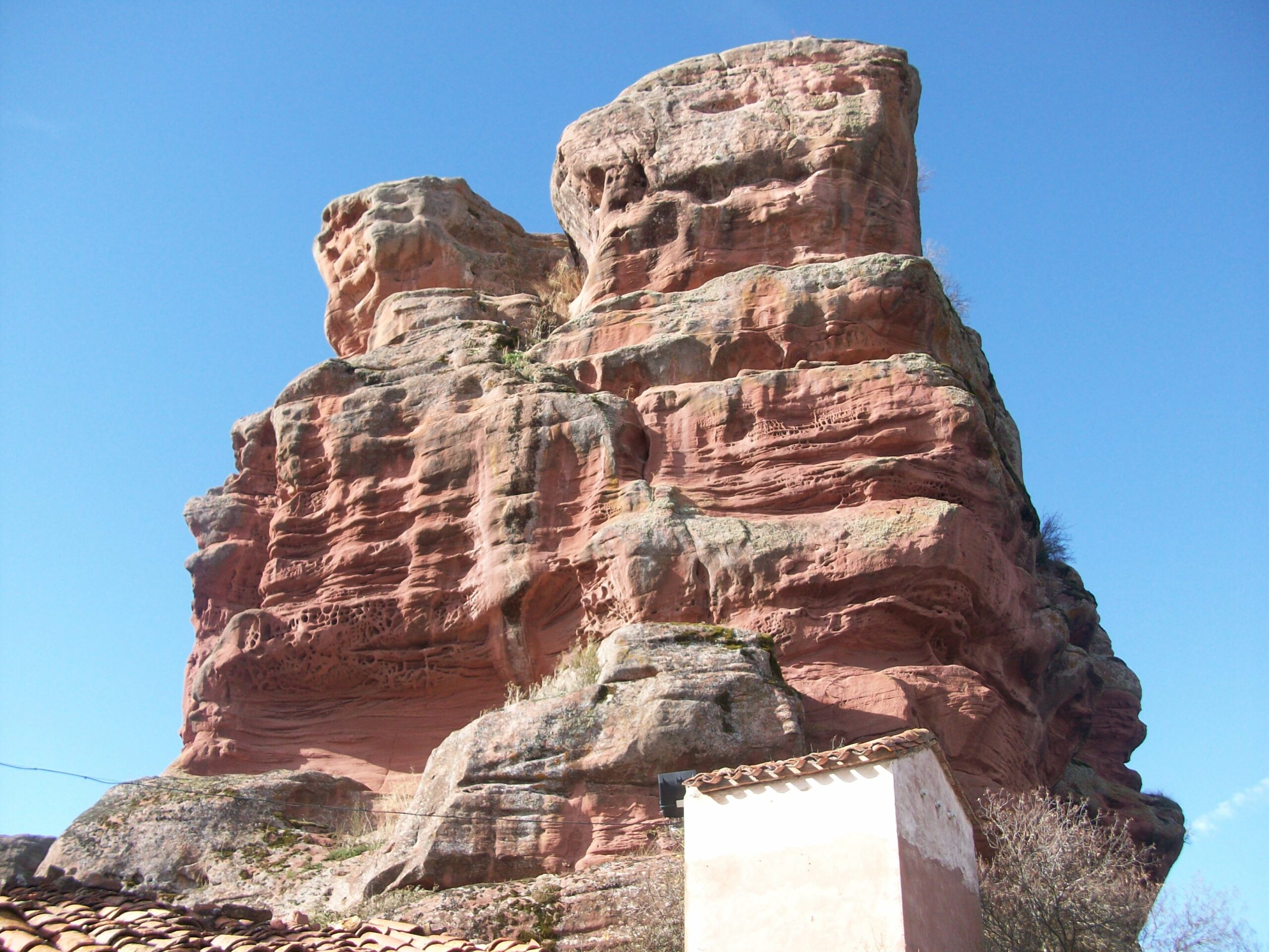 El Principal encanto del pueblo reside en sus casas y calles levantadas entre curiosas formaciones rocosas de arenisca roja, labradas durante la época del Triásico, cuando toda esta zona estaba bajo el agua. El porque los habitantes se asentaron en este lugar es muy fácil de entender, las formaciones rocosas actuaban como muralla natural ante las inclemencias de tiempo, y muchos pastores se guarecían del terrible frío de la zona entre las impresionantes rocas, con el tiempo se empezaron a construir casas y establos para proteger humanos y reses y ello dio origen al pueblo, por ello todas las Casas se sitúan al abrigo de estas moles de piedra, en otros casos se sitúan a la solana para combatir el duro invierno.