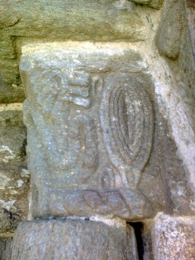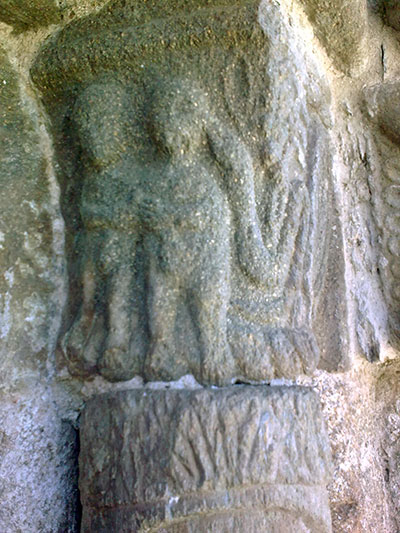 Nos centraremos en los capiteles románicos citados, aquellos que muestran las figuras de Adán y Eva…y la serpiente, susurrando al oído de Eva. Todo podría pasar por una de tantas representaciones de la escena del Génesis, pero hay otras circunstancias que nos ponen en alerta sobre el carácter profano de dicha representación. A la vuelta de los capiteles encontramos labradas varias representaciones de algo que parecen ser vulvas humanas, idénticas a las que podemos encontrar en abrigos y cuevas que contienen pinturas rupestres. El Camino de Santiago o Camino de la Vía Láctea, está plagado de serpientes o wuivres, como las llamaban los celtas, a aquellas fuerzas subterráneas que eran capaces de servir como catalizador para la trascendencia del visitante.