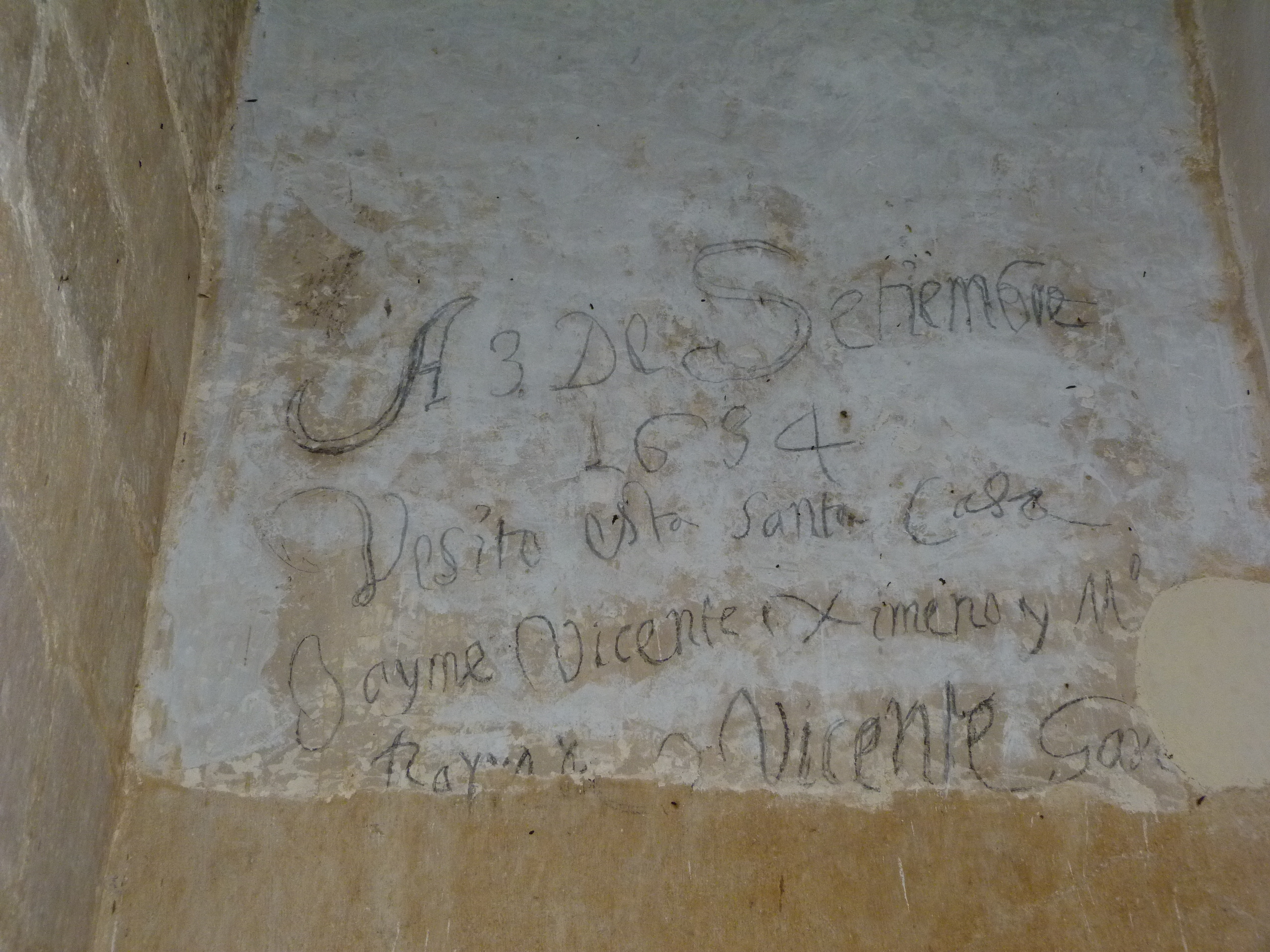 En otros diversos lugares de los muros, se conservan testimonios pintados y escritos que anónimos visitantes dejaron a su paso por el santuario. Hay también dibujos e inscripciones (seguramente del mismo pintor anonimo de los murales citados), entre ellos un retrato con la inscripción “El Duque de Saboya” (yerno de Felipe II); otra inscripción dice “El Conde de Olivares soy”. Hay también numerosas inscripciones de visitantes de la primera mitad del siglo XVII en valenciano, latín y castellano.