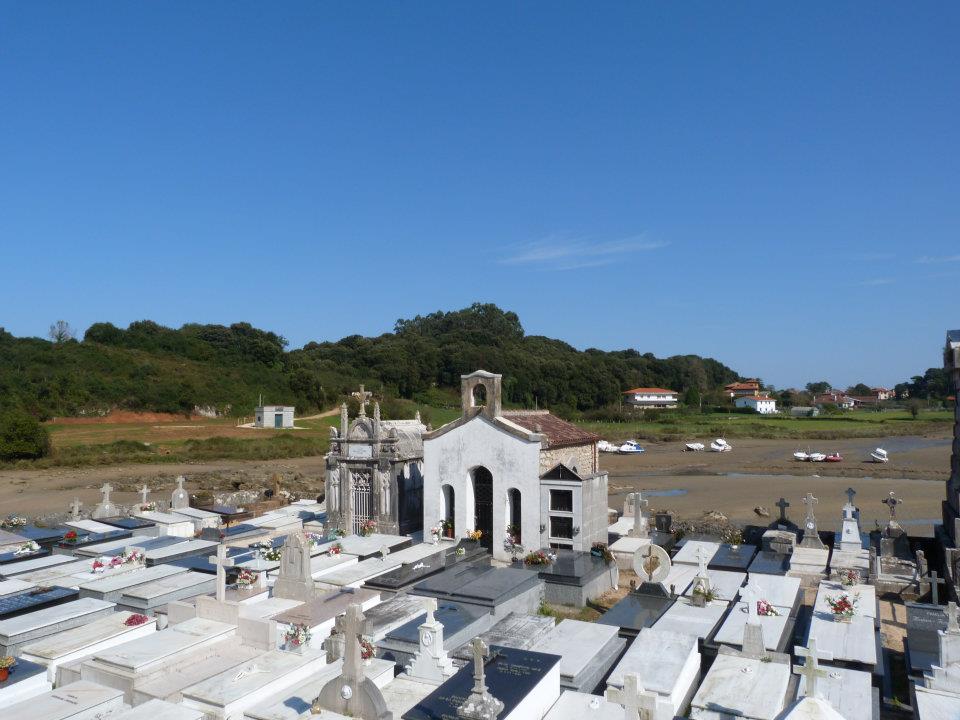 Este camposanto, también del S.XIX, es uno de los más originales de toda Asturias, y uno de los referentes del «Necroturismo» nacional e internacional, por su excepcional emplazamiento, quedando sus cimientos dentro del arenal de la propia Ensenada que cuando se encuentra en Pleamar lo rodea hasta sus muros de contención, quedando en una pequeña Península, siendo por ello uno de los Cementerios mas pintorescos de toda España, pese a que no cuente con ningún elemento artístico de interés, salvo por algún Panteón y una pequeña Capilla a modo de Ermita, siendo el resto Nichos y sepulcros.