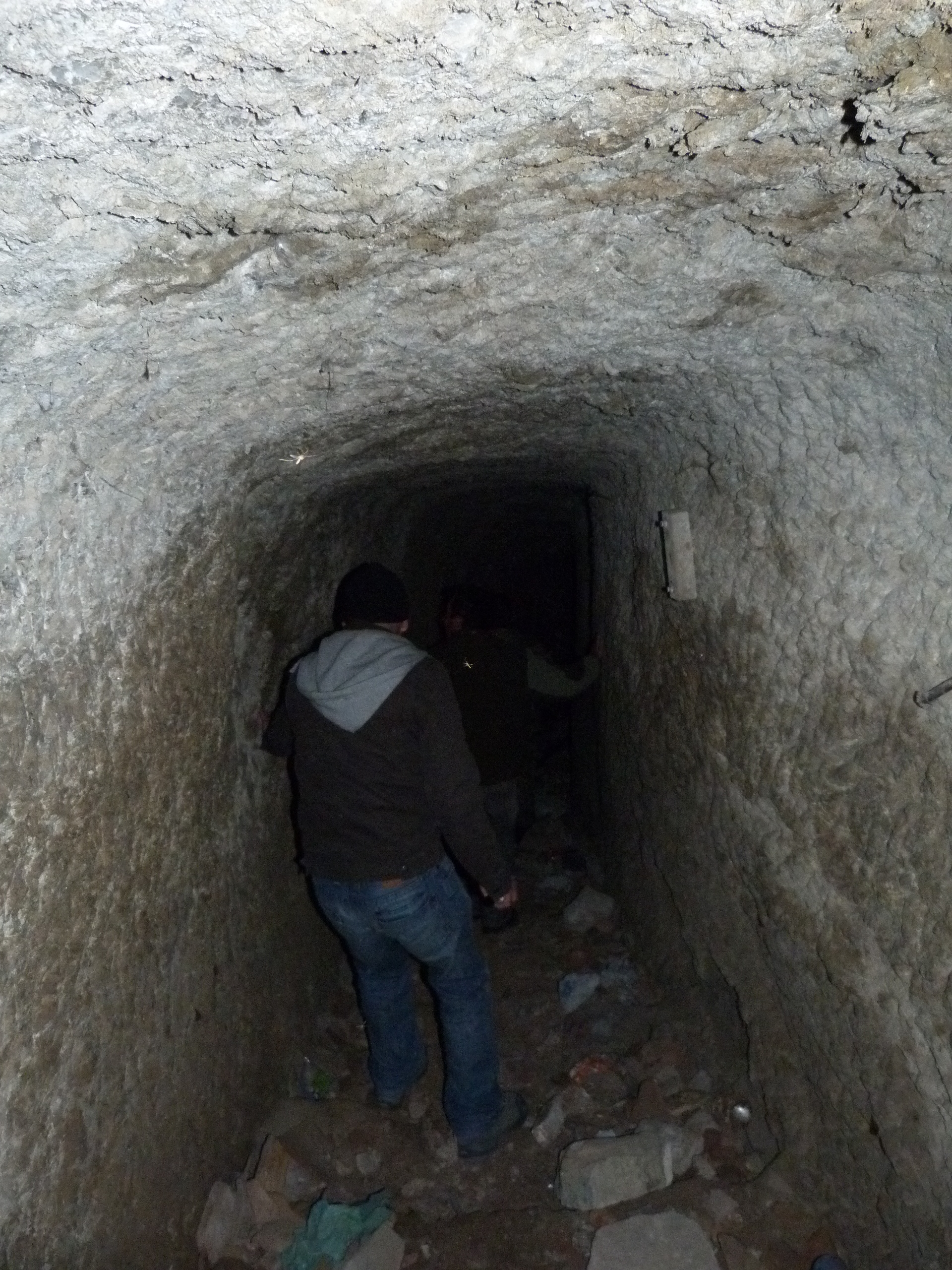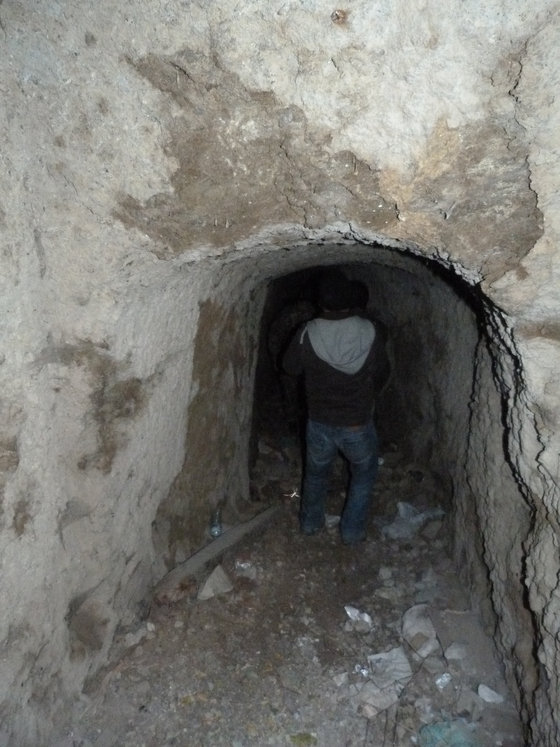 En el complejo hay dos cuevas (que se sepa). La primera, una cueva de aproximadamente 400 m. de longitud y unos 30 m. bajo el nivel del suelo la cual derivaba en un pozo de aguas de aproximadamente 40 m. de profundidad el cual nacía en el depósito de aguas de la superficie (la cual no encontramos, ya que la boca de entrada creo que se encuentra tapiada). La segunda era en teoría una cueva de crianza de vinos, la cual está a 10 metros de profundidad del nivel del suelo que parece ser comunicaba con un un pozo de aproximadamente 25 metros de profundidad, el cual no vimos porque el fondo se encuentra colmatado. Esta cueva es solo para aventureros y recomiendo ir bien armado de linternas ya que la oscuridad es total y la sensación de claustrofobia muy palpable. Es muy peligrosa pues el suelo es arcilloso, los escalones están desgastados y cualquiera puede caerse provocando el «efecto tobogán».