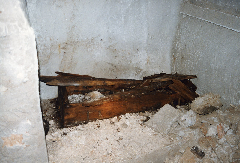¿Quién estaba allí enterrado y de cuando data? poco se sabe, puede que sea una construcción de finales del siglo XVII, principios del XVIII. Los muertos pueden que sean antiguos nobles del pueblo, o puede que heterodoxos, de ahí el tabicar así el lugar. De todas formas es una pena que un lugar como este se pierda, ojalá en un futuro se abra y rehabilite.