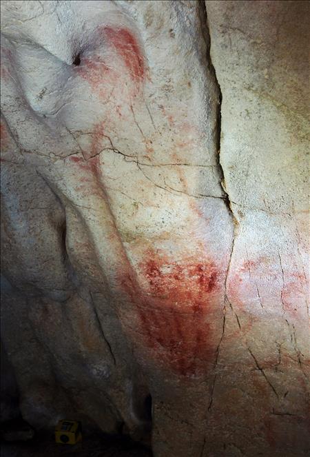 Esta es la pintura que ha despertado la discusión científica sobre su significado, en una cavidad Patrimonio de la Humanidad, junta a otras nueve de Cantabria, que alberga en sus paredes dibujos hechos con el dedo, antropomórficos y de animales, y grabados de cérvidos y bisontes. Junto a grupos de bastoncillos, puntos y trazos sin un significado desvelado hasta el momento, emerge la figura redondeada de lo que, para algunos científicos, es una mujer, según relata el conservador y especialista en arte prehistórico, Raúl Gutiérrez.