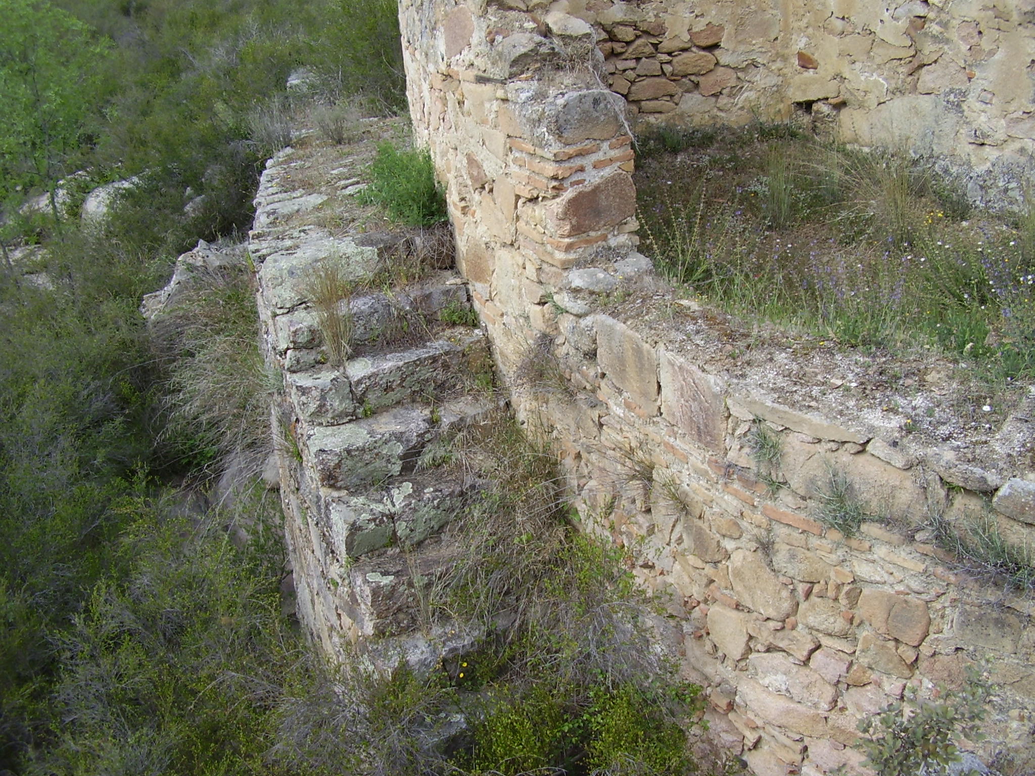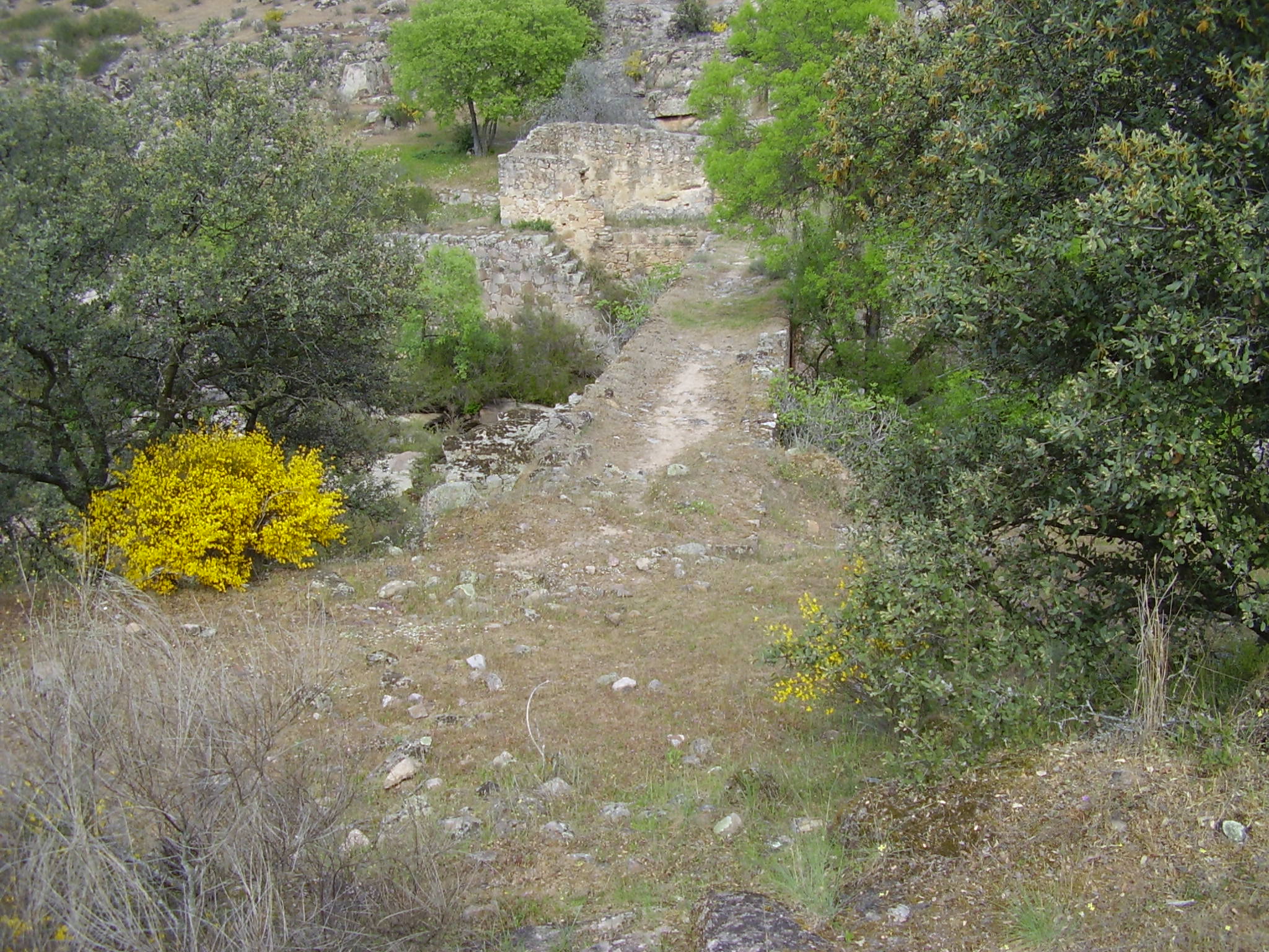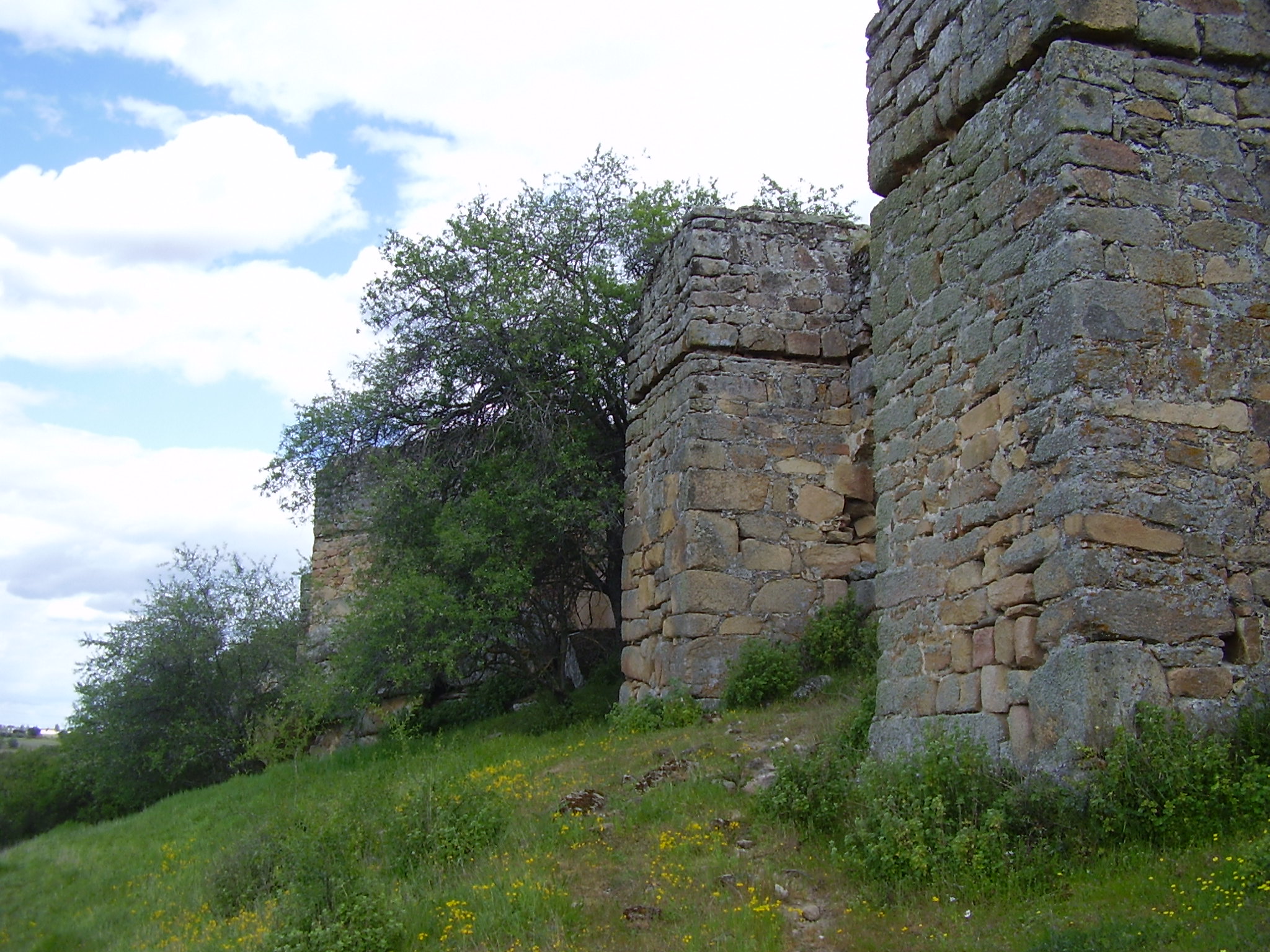Fuera del castillo se extiende paralela a la orilla, los restos de una aldea sujeta a su protección, con viviendas de planta rectangular, construidas, al igual que el castillo con aparejo granítico, material abundante en los alrededores. Su abandono y despoblación, se inicia con la rendición de Toledo por Alfonso VI, y la posterior ocupación cristiana de los valles del Tajo.