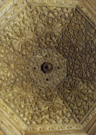 Por último, el tercer tramo el de los pies es de tamaño medio, corresponde con el ancho de la torre y montado, sobre las vigas por los lados, lo cubre una armadura ochavada con pechinas y arrocabe de molduras. La ornamentación de dicha artesa es de lazo de ocho y doce ataujerado, con cintas verdugadas y un racimo de mocárabes.