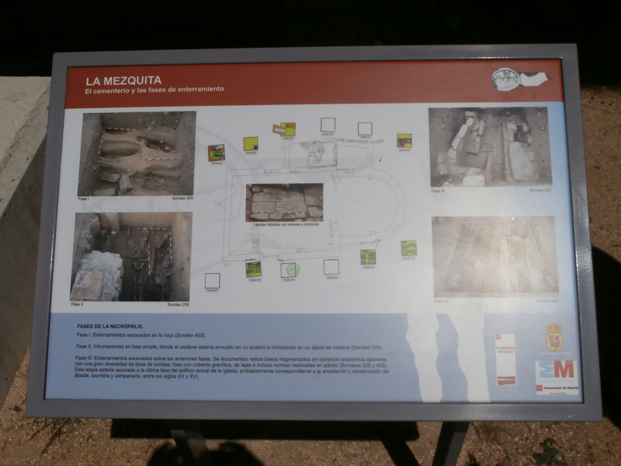 Es curiosa la denominación de «Mezquita» que se le da al Yacimiento. La explicación es clara; siempre se había conocido la existencia de un Cementerio de gran antigüedad al lado de la Iglesia, al que decían «de moros», por la creencia popular local que antes que la Iglesia Cristiana había situada una Mezquita en el mismo sitio, cosa que luego se ha visto que no es así.