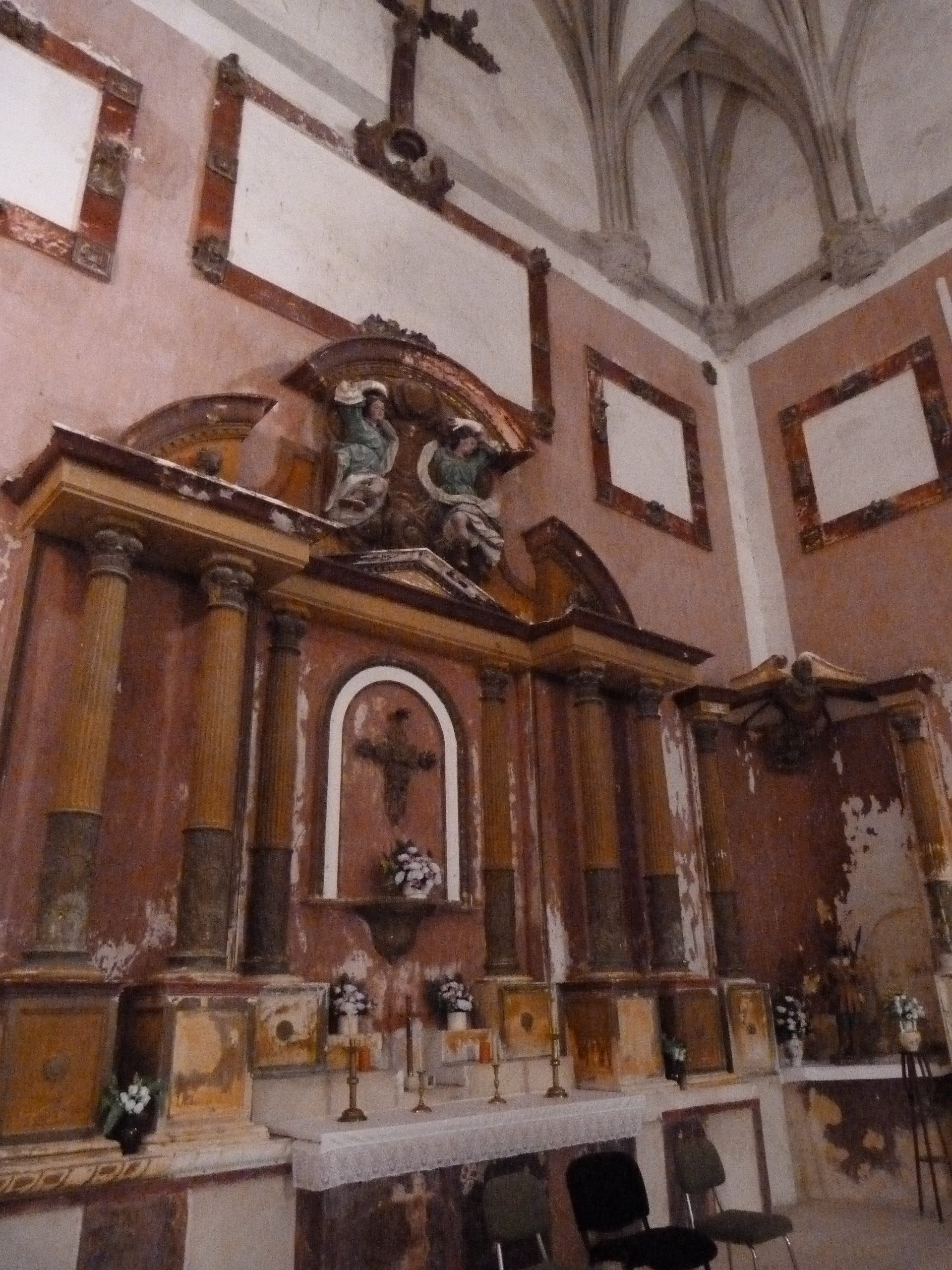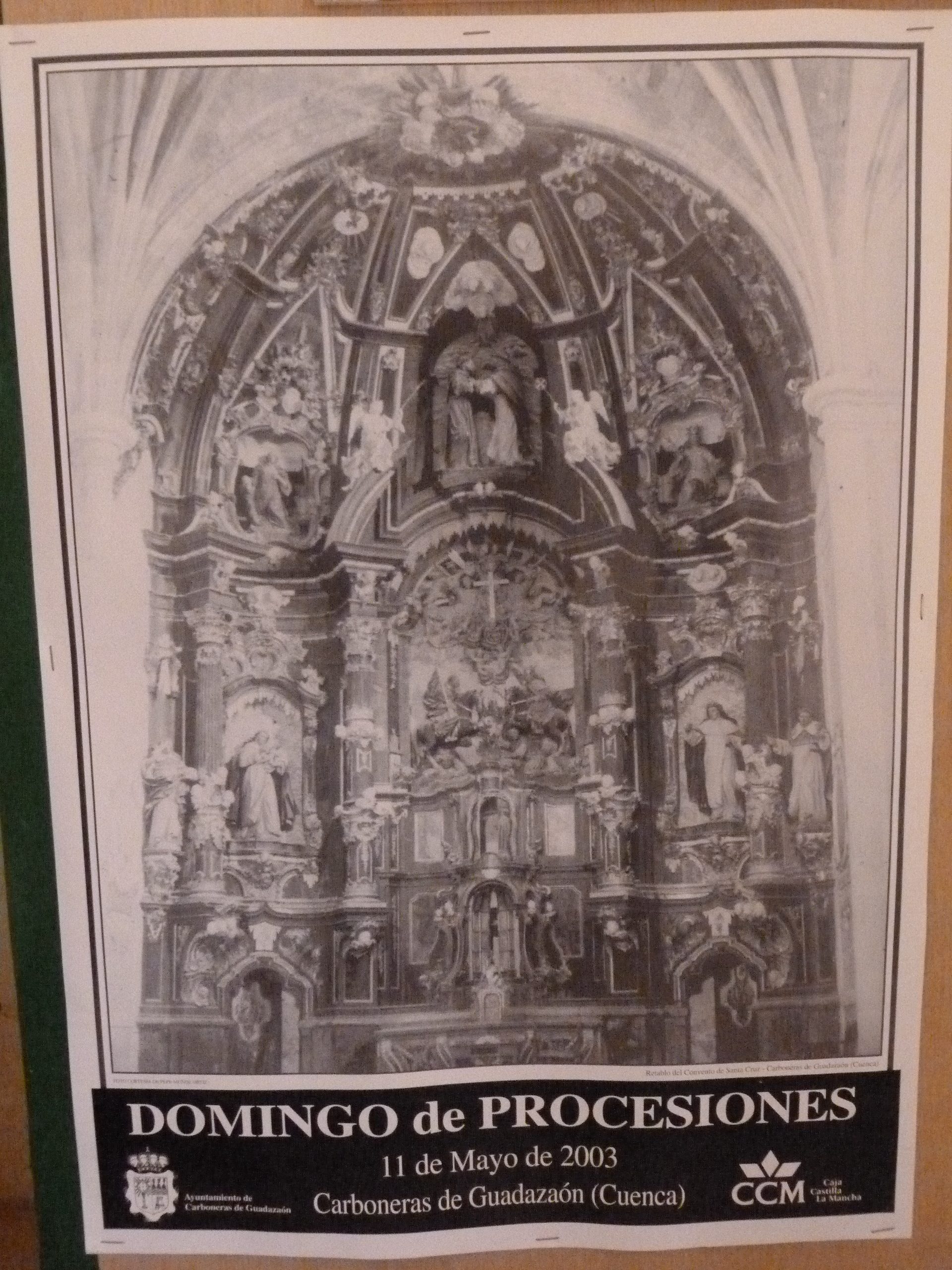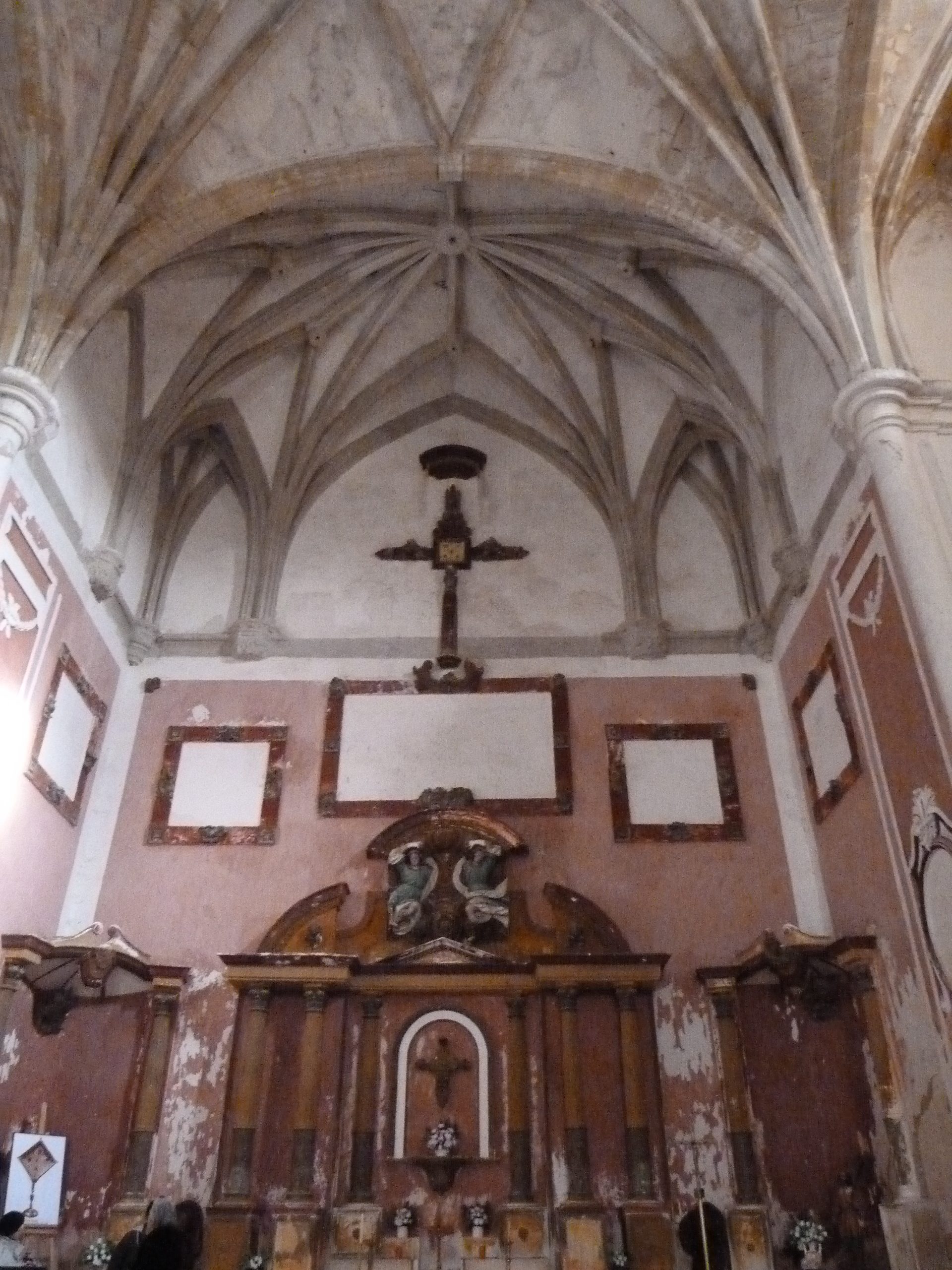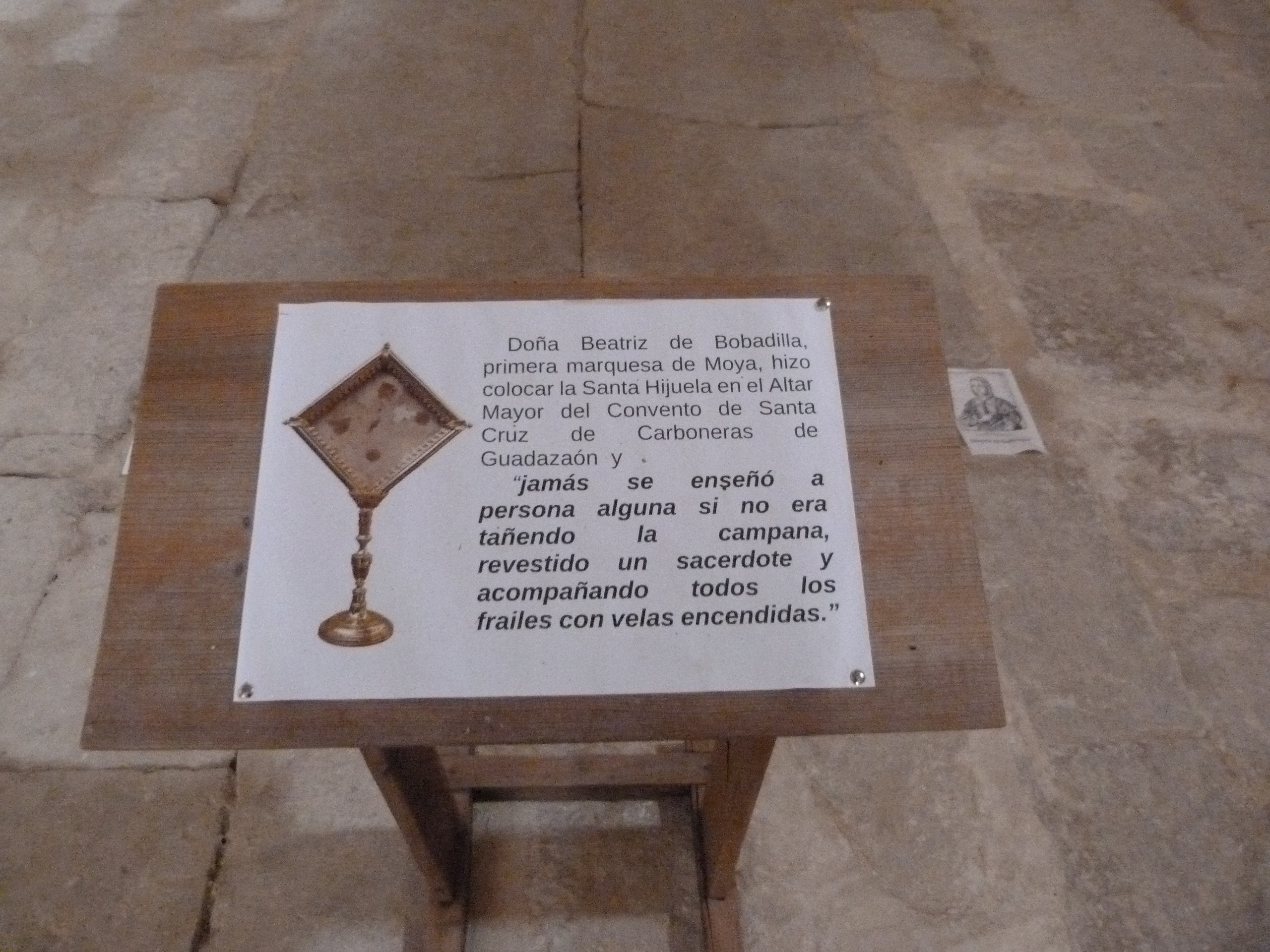 En la Carretera que une Cuenca con Teruel, a su paso por la localidad Conquense de Carboneras de Guadazaón, nos llama la atención un templo que queda a pie de carretera a mano derecha. La parada es ineludible, y mas al ver la puerta del mismo abierta, y en un visible estado de restauración. Nada mas entrar tenemos la inmensa suerte de encontrarnos con una Señora, Maria Isabel, que resulta ser la Alcaldesa del pueblo y que nos abre la puerta amablemente y nos muestra con orgullo esta bella Iglesia, que en realidad resulta ser un gran Panteón perteneciente a los antiguos Marqueses de Moya, y que tras caer en la ruina y el abandono, esta siendo restaurado y adecentado por la gente de Carboneras, que no quiere ver desaparecer este fantástico monumento y que con aportaciones personales y planes provinciales de restauración, va recuperando parte de su esplendor perdido.