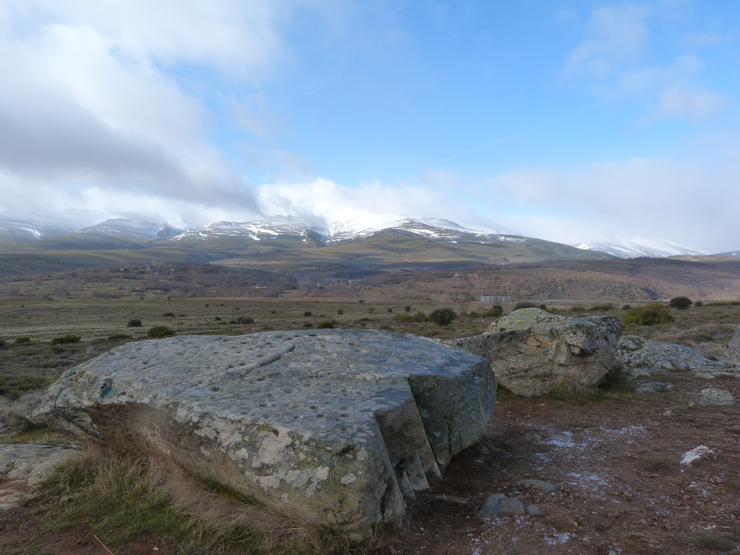 Petroglifos de Peña Fadiel, al fondo el Monte Teleno