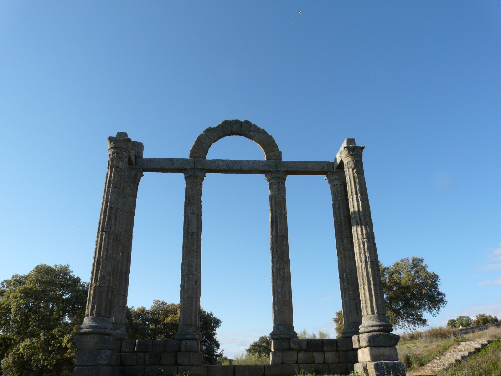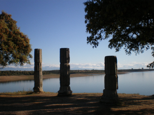 Precioso lugar, muy evocador, dan ganas de sumergirse en el embalse y buscar mas restos, que los hay…he pasado un par de veces por allí y te entra una necesidad imperiosa de pararte y mirar la estructura, hacer fotos y descansar. Me encantan estos lugares con estructuras parecidas, provocan nostalgia y te hacen mirar al pasado con gran interes y despertar muchas inquietudes….paseando por internet he visto esta foto que creo que pertenece a Talavera la vieja con restos de otro templo romano: