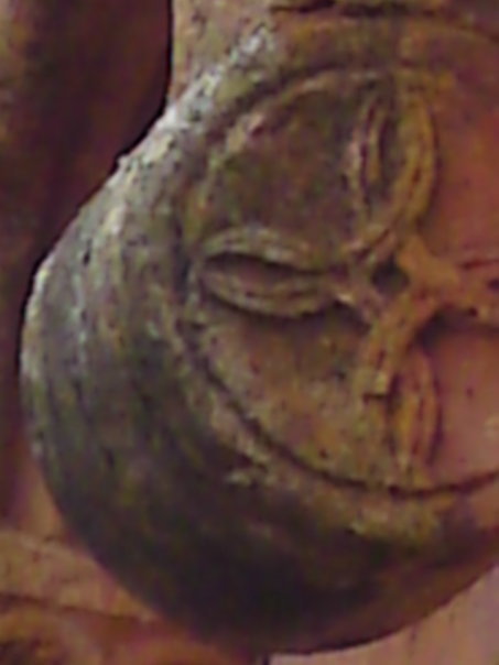 Dos columnas externas con decoración vegetal rematadas en volutas sirven de apoyos. En cada hueco interior se abren sendos óculos, con aberturas circulares y en forma de lágrima, rodeados por dos molduras circulares.