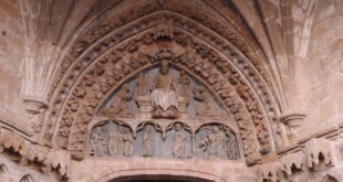 Son muy pocos los ejemplos de Portadas medievales policromadas, ya sean Góticas o Románicas, que nos han llegado a nuestros días. Los tímpanos, arquivoltas o parteluces que hoy vemos desnudos y color piedra en su tiempo eran coloridos y animados, encaminados a la enseñanza de las Escrituras a un pueblo analfabeto y pobre que no sabia ni leer ni escribir. …
