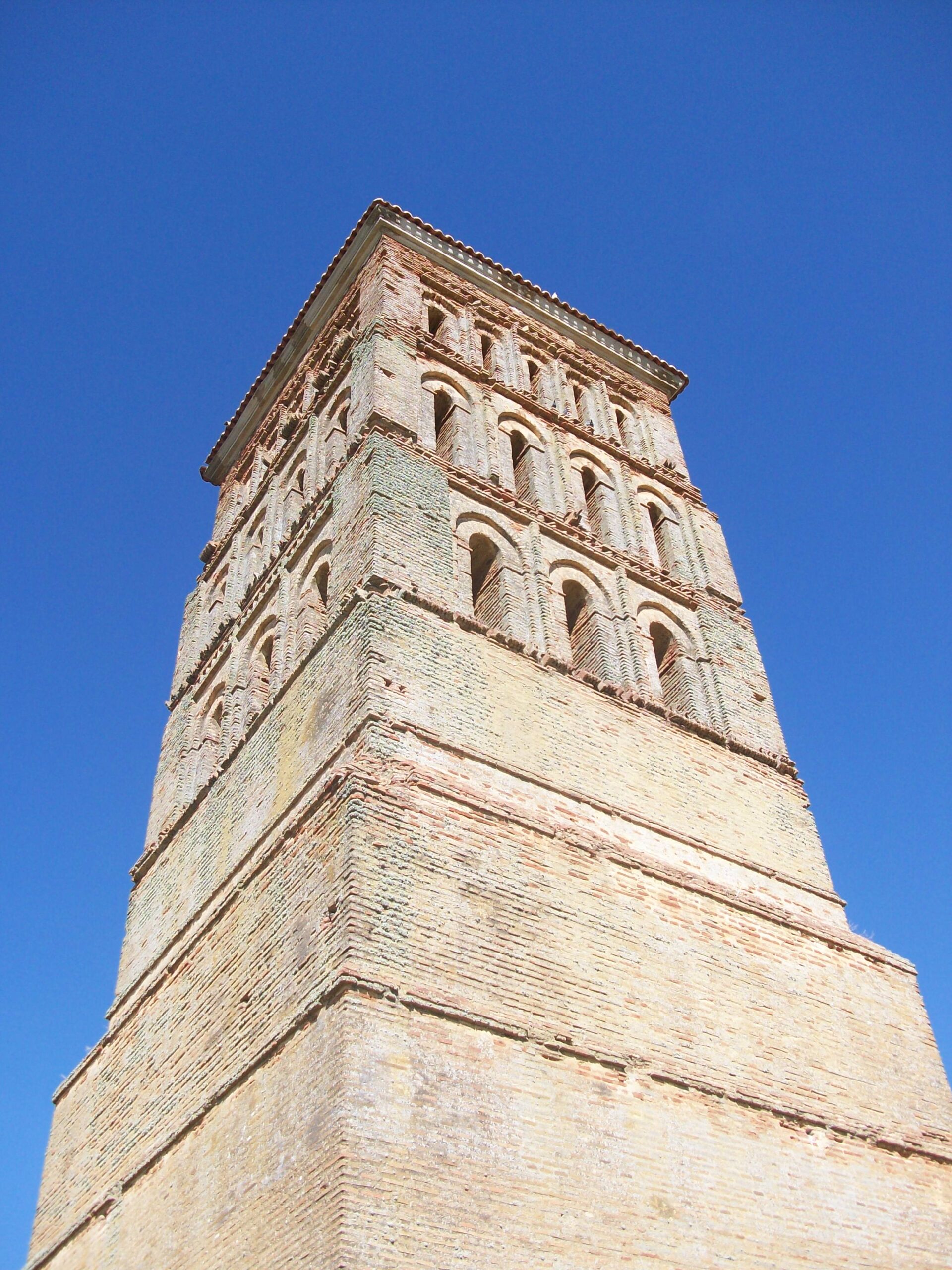 “Con su sobria decoración mudéjar y sus tres pisos de vanos, intenta disfrazarse de palomar, para alejar su aburrimiento. Pero quizá por respeto, las palomas no se acercan hasta los nidales de sus campanarios varios. Al pasar junto a ella, compadecidas, las nubes revolotean, como palomas grises que intentaron ser blancas”