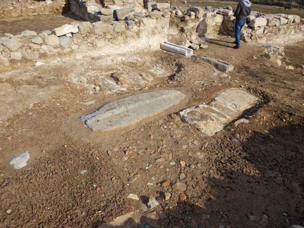 Entre las piezas encontradas en el recinto hay una inscripción asociada a un enterramiento principal que el equipo investigador del yacimiento interpreta como una alusión a la conversión de los visigodos al cristianismo, además de varios recipientes parecidos a una botella en los que entonces se traía a la península vino norteafricano, una flauta y relieves de la decoración exterior del palacio en granito y del interior en caliza marmolizada.