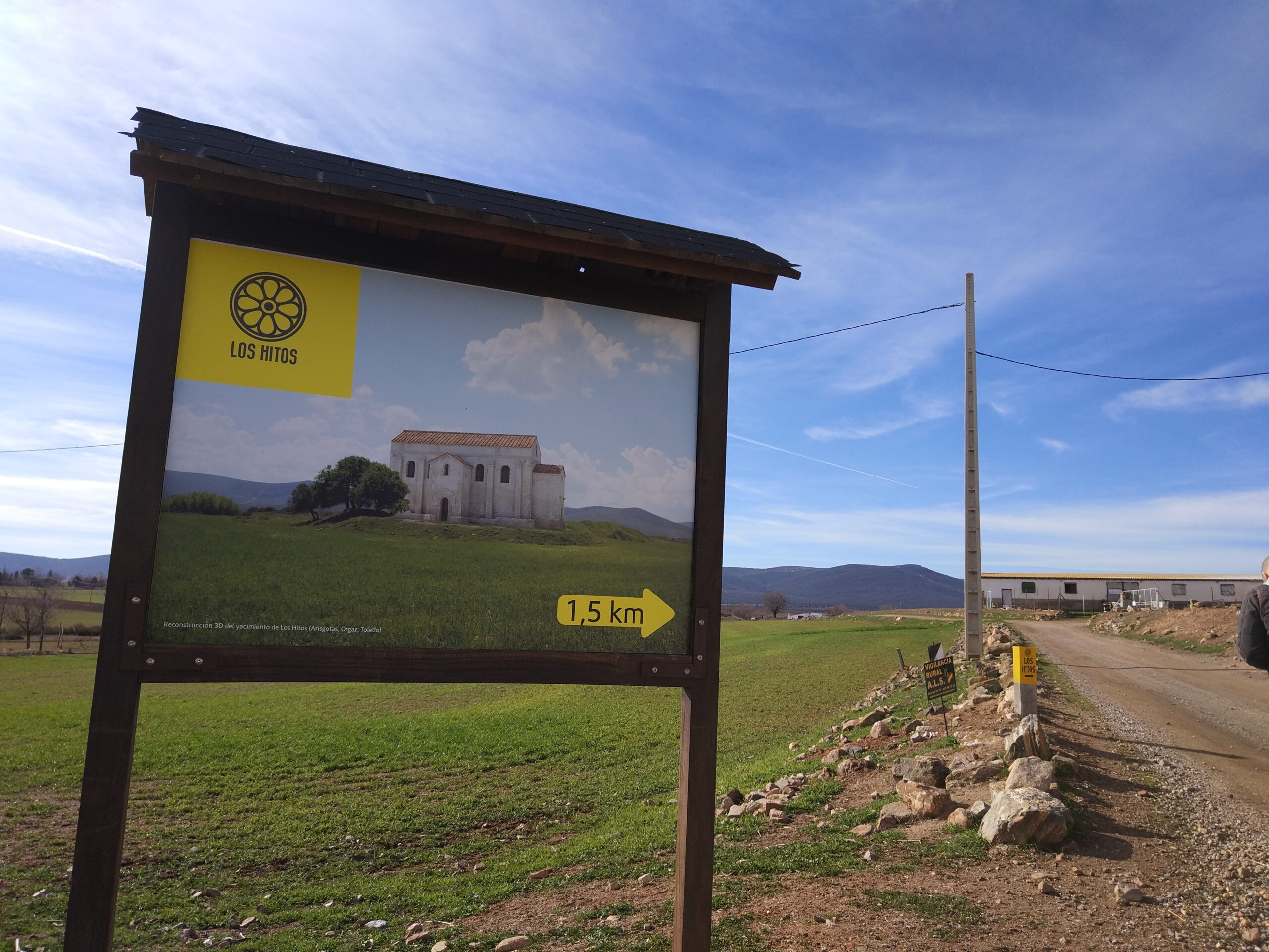 Según el director de la excavación, el arqueólogo Jorge Morín, el yacimiento de Los Hitos estuvo en pie hasta el siglo VIII y fue en realidad un palacio de dos alturas del que brotan dos pórticos sobre una planta «mimética» a la iglesia prerrománica de Santa María del Naranco (Oviedo), de la que sería precedente.